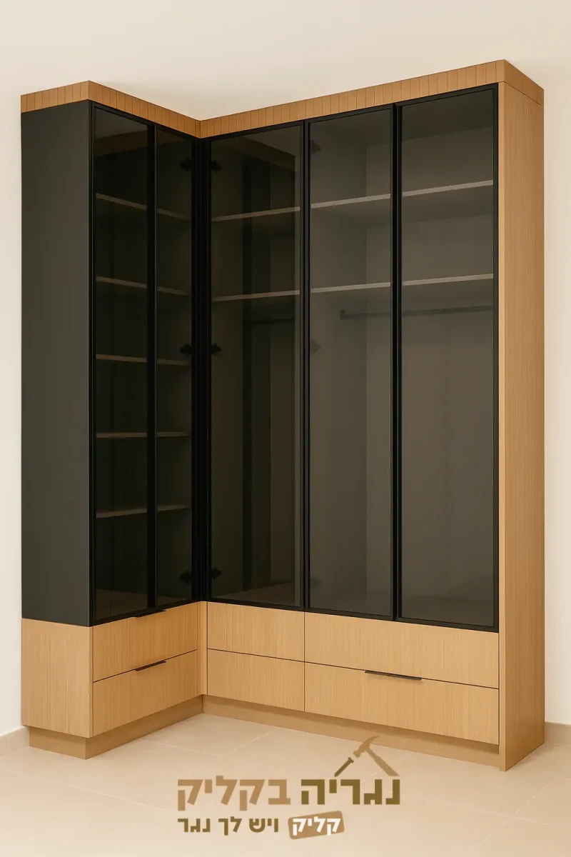 ראשי » ארונות » ארון פינתי בהתאמה אישית – דגם בלאק ווד גלאס