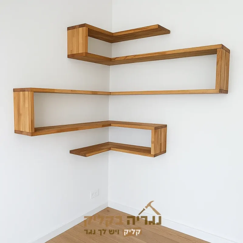 מדפי קיר פינתיים בעיצוב מודרני בהתאמה אישית – דגם נחש עץ