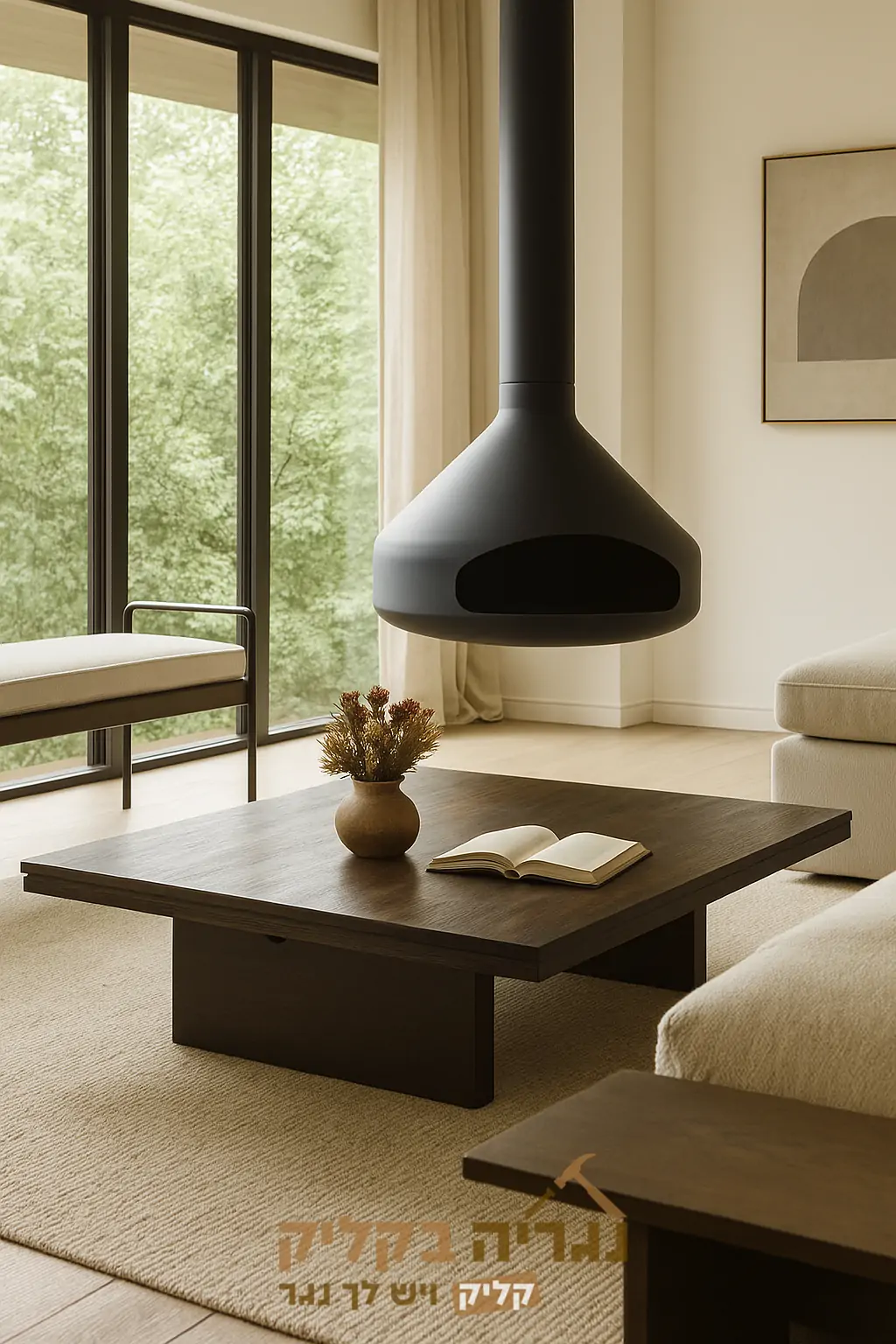 המשטח הרחב והנמוך משתלב בצורה מושלמת עם ספות מודולריות ועיצוב פנים טבעי ונקי, ומאפשר שטח נוח להנחת ספרים, פריטי נוי או משקאות.