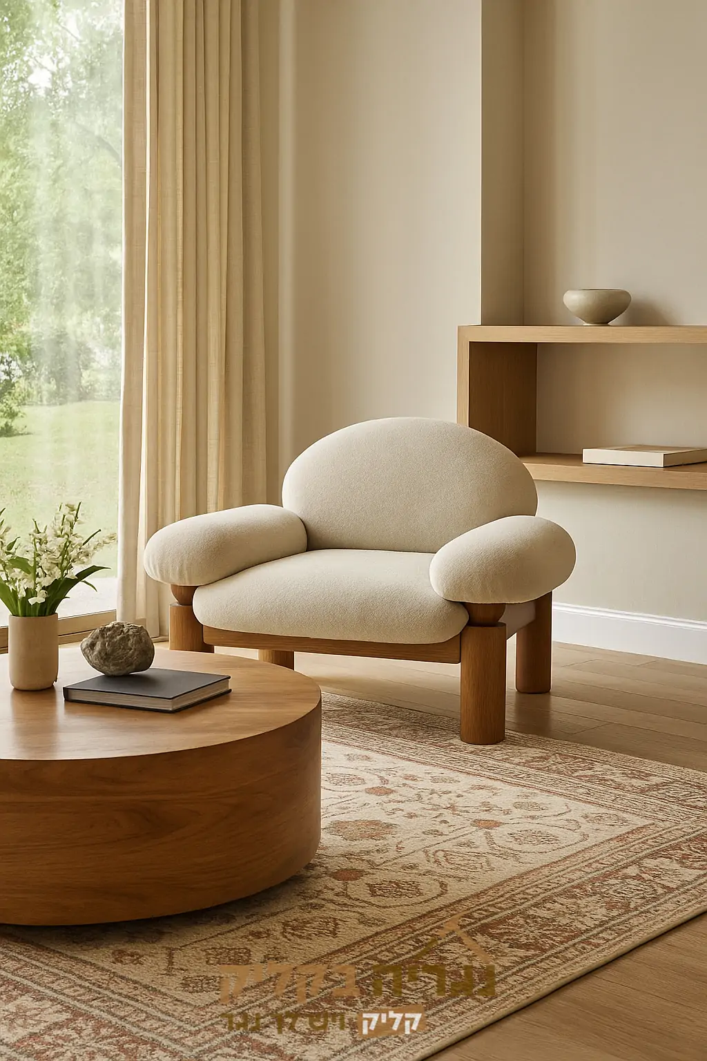 העיצוב המשלים של הקווים המעוגלים יוצר תחושת שלווה ואיזון – מושלם לפינת קריאה, סלון או חדר שינה מעוצב.