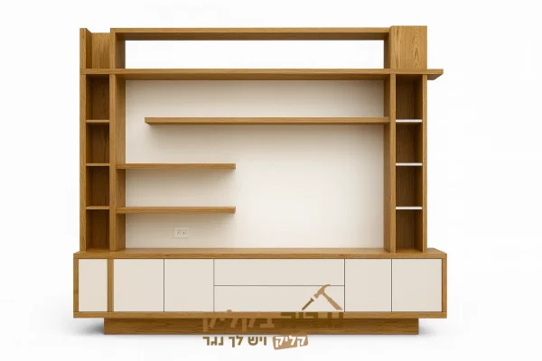 ניתן להזמין בהתאמה אישית לפי מידה, צבעים, סידור מדפים וגודל הנישה לטלוויזיה.