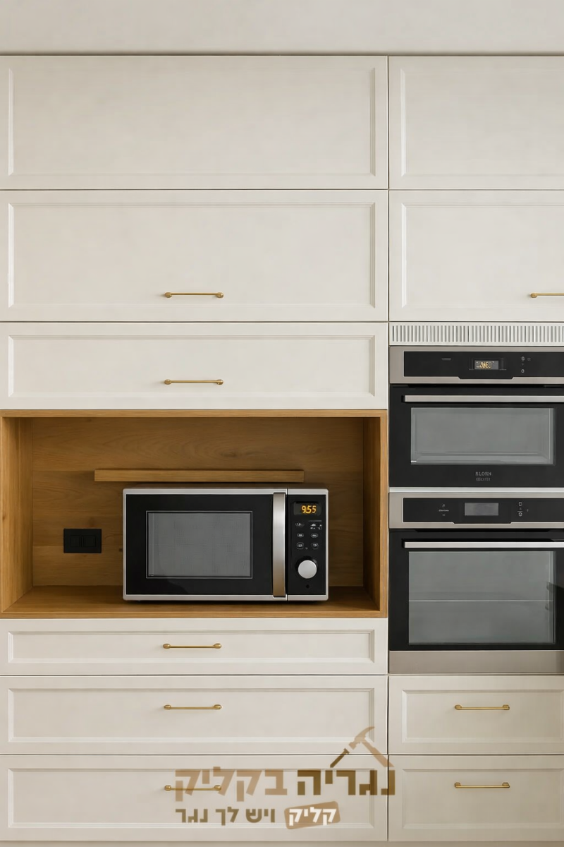 בנגריה בקליק אנו מתמחים גם בהתאמת יחידות אחסון וארונות למיקרוגל למטבחים קיימים – כך שניתן לשלב את הארון החדש בצורה מושלמת במטבח שכבר בנוי בבית, מבלי לפגוע בעיצוב הקיים.