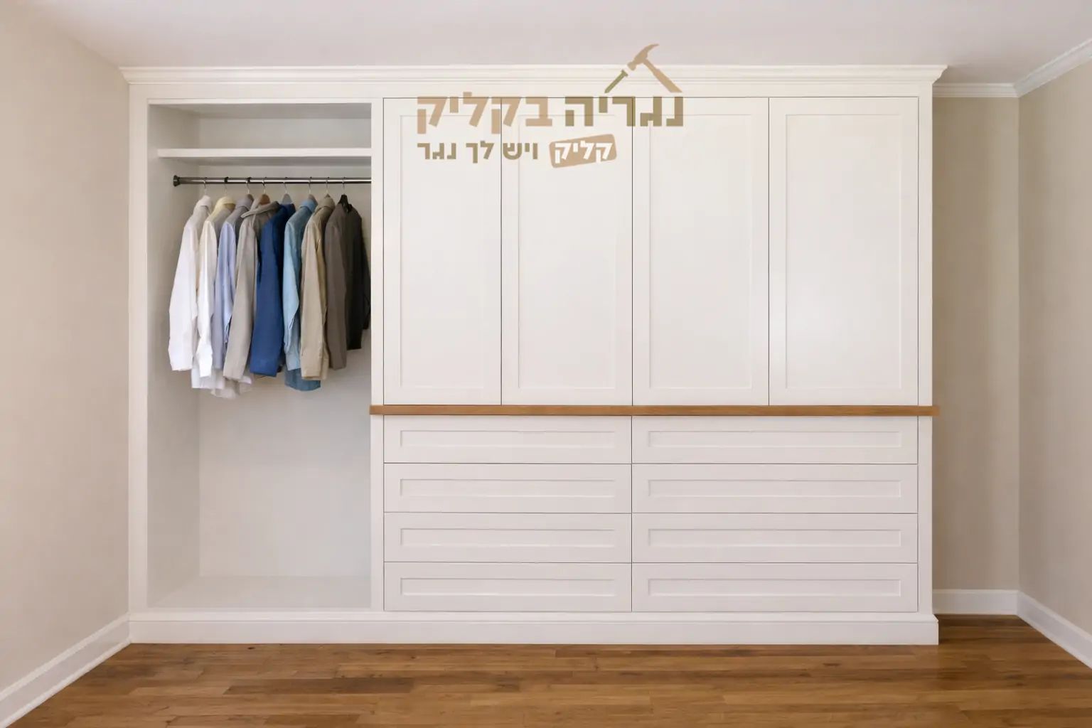 הארון נבנה בהתאמה אישית מלאה לפי מידות הנישה והצרכים שלכם עם אפשרות לשינוי חלוקה פנימית צבעים וגימורים ליצירת מראה יוקרתי ומדויק לאורך שנים.