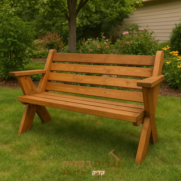 ספסל גינה מעץ מלא בהתאמה אישית – דגם נורדי קלאסיק
